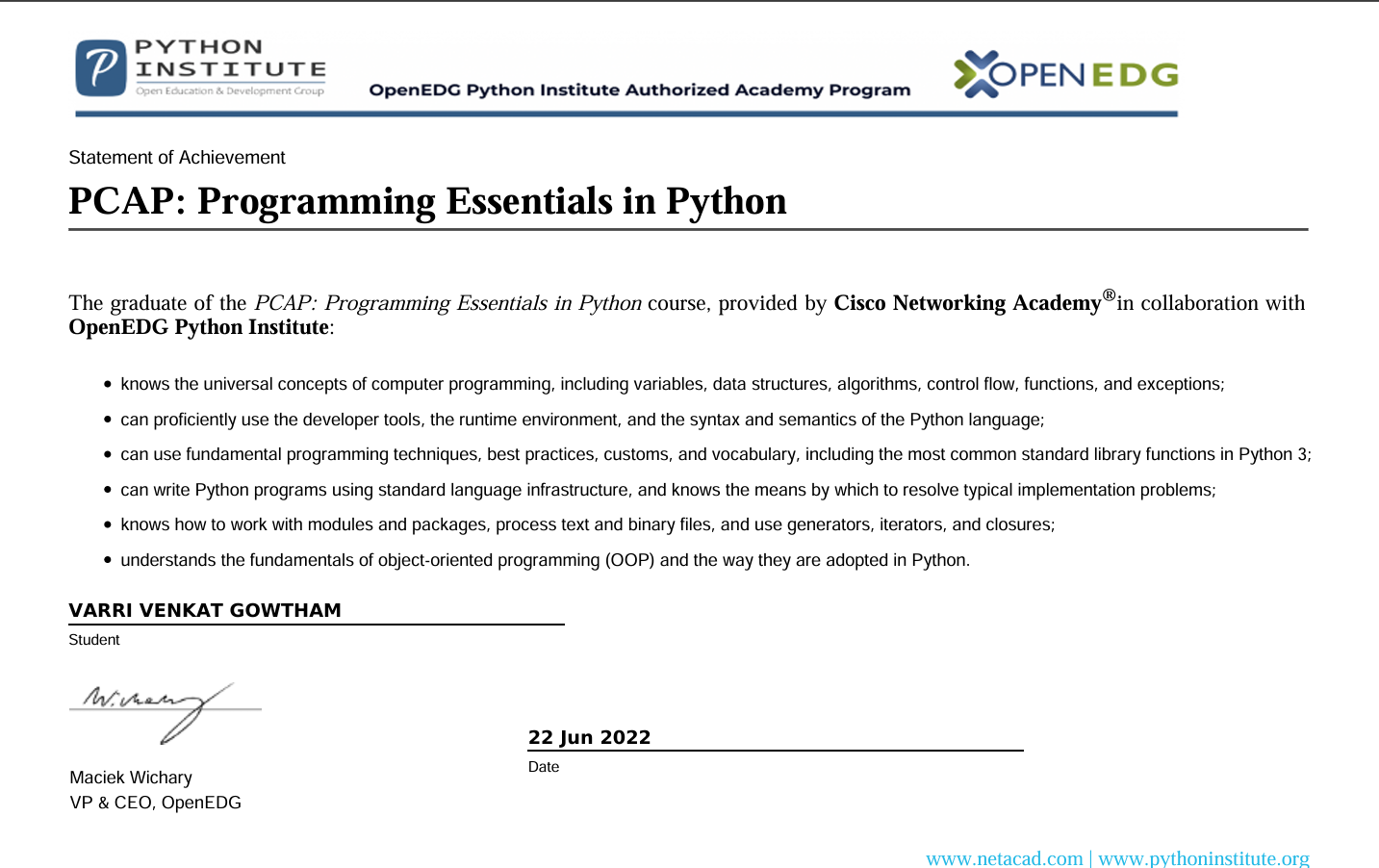 i have acquired Programming Essentials in JAVA certificate by fullfilling the certificate requirements and got the certificate from Oracle Accedemy on may 21 2023.